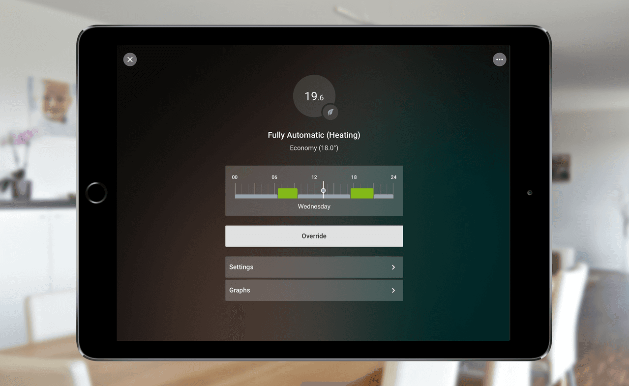 Jste celý den v práci a je zbytečné, aby se v domě topilo na vyšší teplotu, zároveň se ale chcete vracet do příjemně vytopeného domova. Díky různým režimům můžete teplotu nastavit podle svého denního programu, a chytrý dům tak začne vyhřívat či chladit jednotlivé místnosti třeba hodinu před Vaším plánovaným příjezdem.